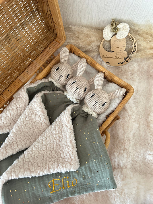 Trio de doudou Valentin Le Lapin Personnalisable