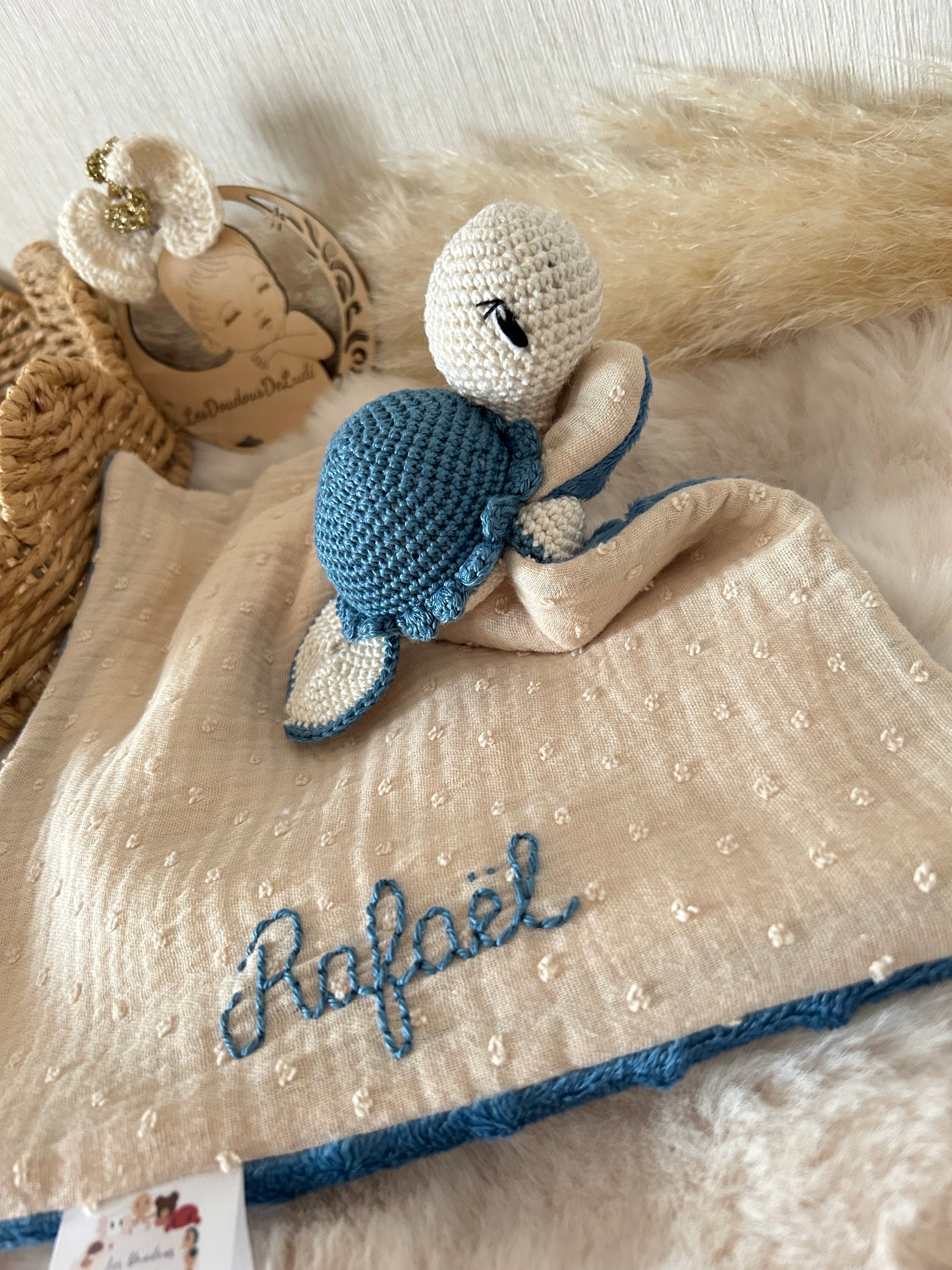 Un doudou unique, fait main avec amour et délicatesse, pour accompagner les premiers instants de vie de votre enfant. Tout doux et ultra réconfortant, Mon Doudou deviendra rapidement son compagnon de cœur, pour l’apaiser, le câliner et l’accompagner au quotidien.